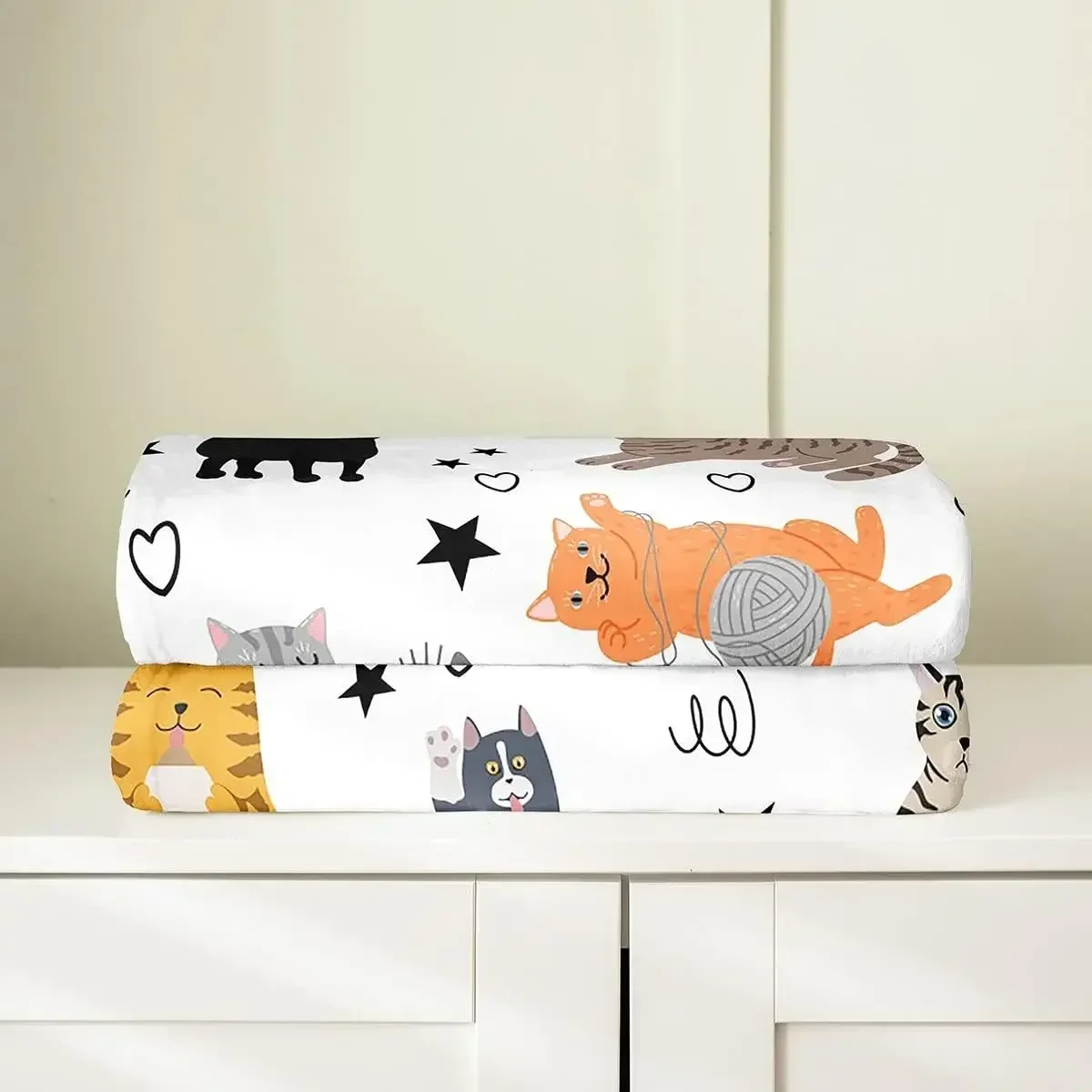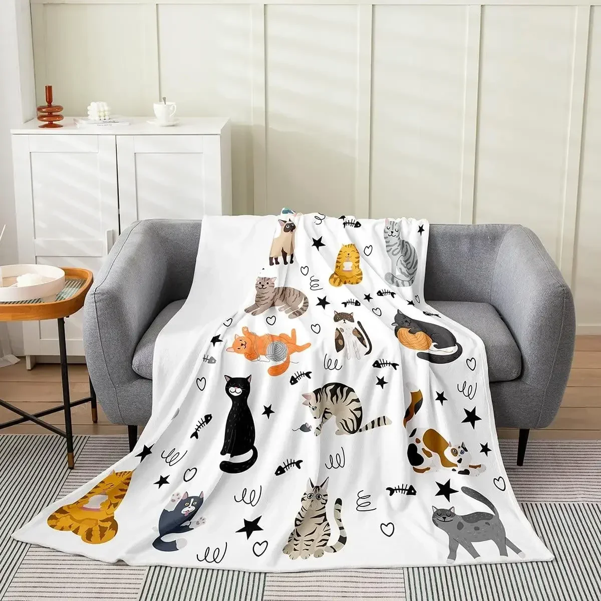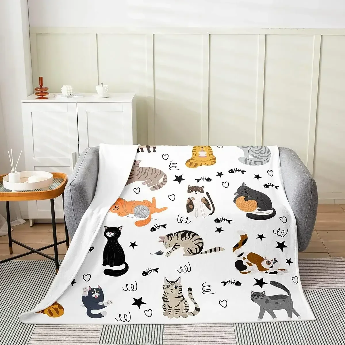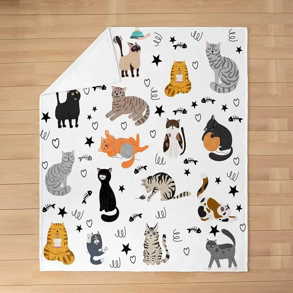 Cute Cat All Season,Bed Blanket Cartoon Cat Print Plush Throw Blanket, for Kids Boys Girls Children Cute Kitten Flannel